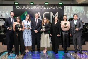 Durante evento comemorativo ao Dia do Médico em 18/10/2024, a Associação Catarinense de Medicina (ACM) prestou homenagem a instituições parceiras nas suas ações de responsabilidade social. Pela criação e desenvolvimento do Programa Novos Caminhos, o Tribunal de Justiça de Santa Catarina (TJSC), a Associação dos Magistrados Catarinenses ( AMC) e a Federação das Indústrias de Santa Catarina (Fiesc) receberam o troféu “Solidariedade faz bem para a Saúde”.