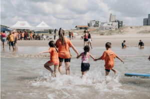 Durante a programação, os jovens participaram de uma aula de surf, guiada por instrutores voluntários, que possibilitou o contato com o mar de forma segura e estimulante. Além disso, foram realizadas diversas ações recreativas ao longo da manhã, promovendo